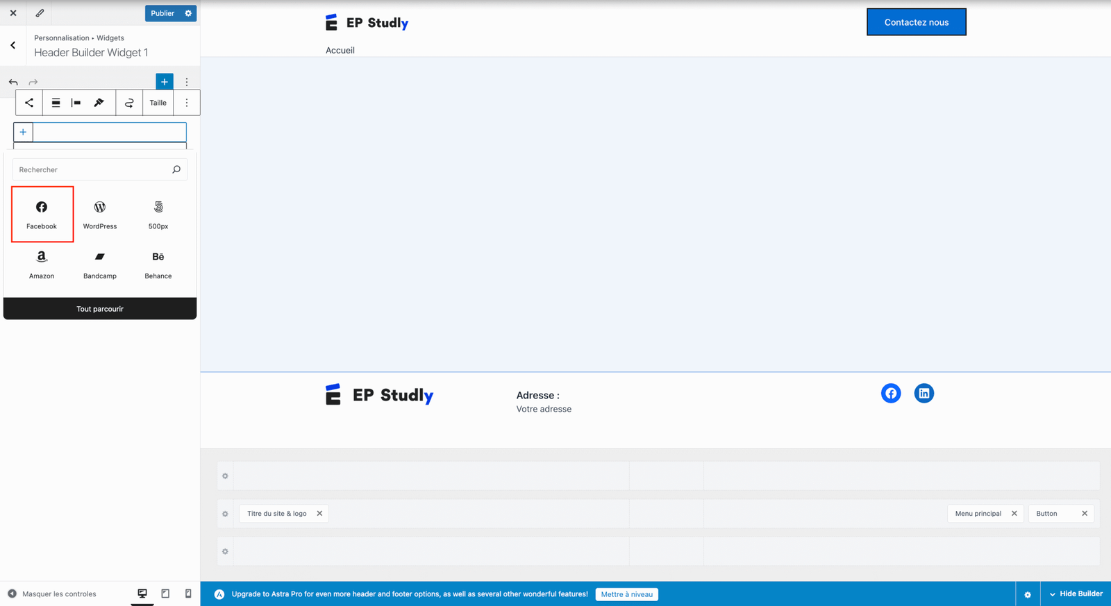 2. Ajouter le widget “Icônes de réseaux sociaux”