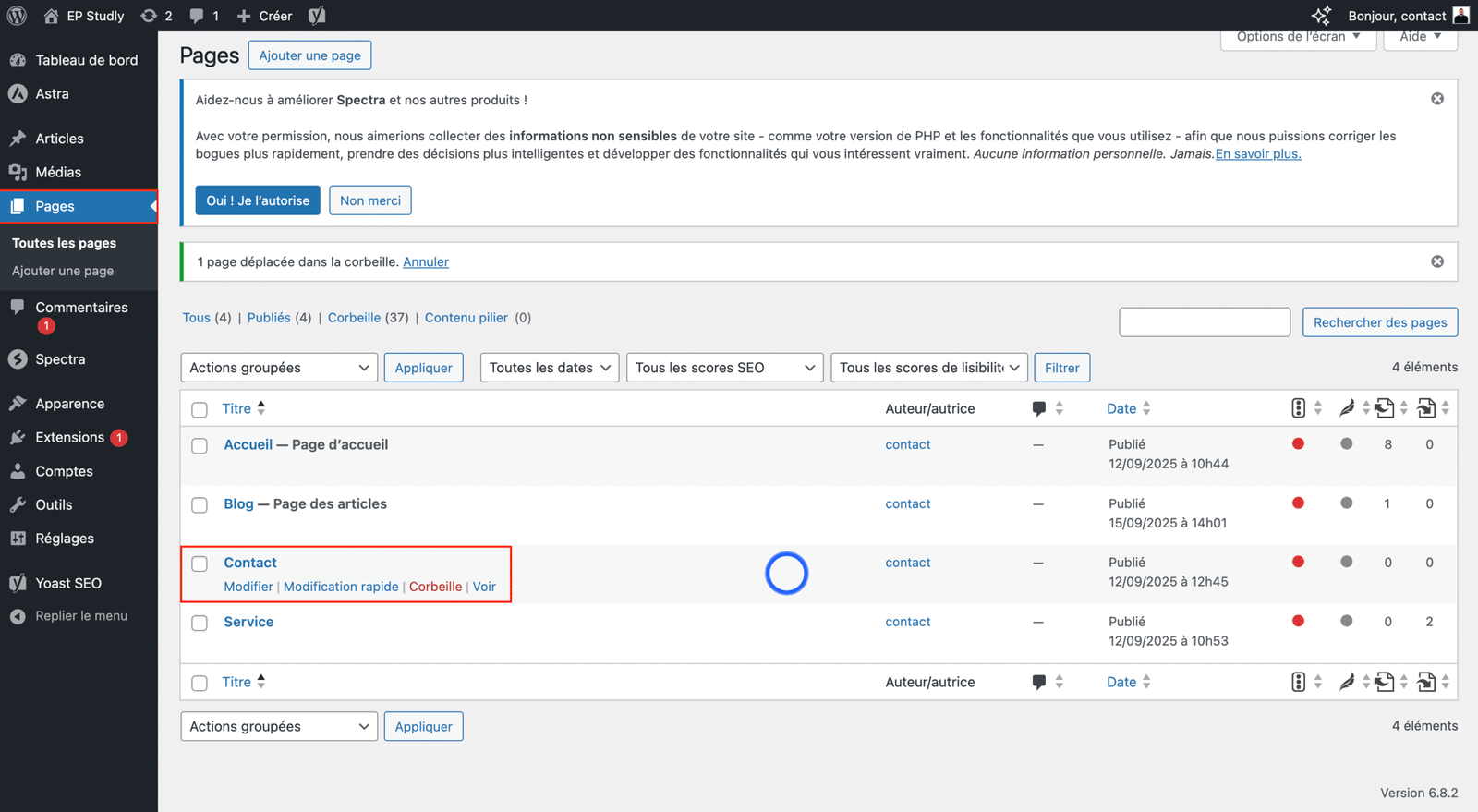 Avant toute chose, il faut insérer le formulaire de contact sur la bonne page, généralement la page Contact du site. C’est à cet endroit que les visiteurs chercheront à vous écrire.